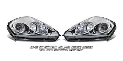 This Mitsubishi Eclipse Projector Headlights will fit 2000, 2001, 2002, 2003, 2004, 2005 Mitsubishi Eclipse. Mitsubishi Eclipse 2000-2005 Clear Dual Halo Projector Headlights also features Projector Style Lighting,Direct Replacement,Easy Installation. Replace or upgrade your Mitsubishi Eclipse Projector Headlights with our Mitsubishi Eclipse 2000-2005 Clear Dual Halo Projector Headlights.