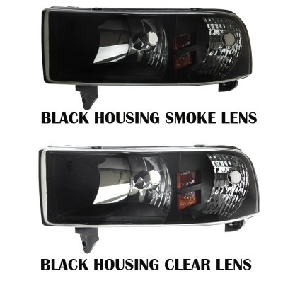 This Dodge Ram Euro Headlights will fit 1994, 1995, 1996, 1997, 1998, 1999, 2000, 2001 Dodge Ram. Dodge Ram 1994-2001 Black Euro Headlights also features Black Housings, Clear Lenses, Direct Replacement Headlights, Low Beam: 9004, High Beam: 9004. Replace or upgrade your Dodge Ram Euro Headlights with our Dodge Ram 1994-2001 Black Euro Headlights.