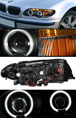 This BMW 3 Series Projector Headlights will fit 2002, 2003, 2004, 2005 BMW 3 Series. BMW E46 Sedan 3 Series 2002-2005 Black Dual Halo Projector Headlights also features Projector Style Lighting,Direct Replacement,Easy Installation. Replace or upgrade your BMW 3 Series Projector Headlights with our BMW E46 Sedan 3 Series 2002-2005 Black Dual Halo Projector Headlights.
