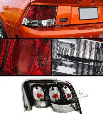 Ford Mustang 1999-2004 Red and Clear Euro Tail Lights
