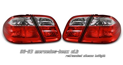 This Mercedes Benz CLK Euro Tail Lights will fit 1998, 1999, 2000, 2001, 2002 Mercedes Benz CLK. Replace or upgrade your Mercedes Benz CLK Euro Tail Lights with our Mercedes Benz CLK 1998-2003 Red and Smoked Euro Tail Lights.