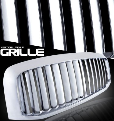 This Dodge Ram Vertical Grille will fit 2006, 2007, 2008 Dodge Ram. Dodge Ram 2006-2008 Chrome Wide Vertical Bar Grille also features Chrome Plated Finish,Direct Replacement,Durable ABS Construction. Replace or upgrade your Dodge Ram Vertical Grille with our Dodge Ram 2006-2008 Chrome Wide Vertical Bar Grille.