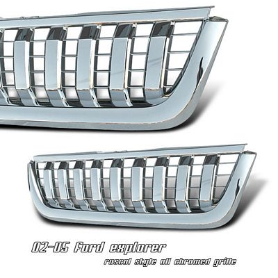 This Ford Explorer Vertical Grille will fit 2002, 2003, 2004, 2005 Ford Explorer. Ford Explorer 2002-2005 Chrome Vertical Grille also features Chrome Plated Finish,Direct Replacement,Durable ABS Construction. Replace or upgrade your Ford Explorer Vertical Grille with our Ford Explorer 2002-2005 Chrome Vertical Grille.