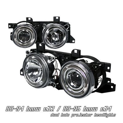 This BMW 5 Series Projector Headlights will fit 1989, 1990, 1991, 1992, 1993, 1994, 1995 BMW 5 Series. BMW E34 5 Series 1989-1995 Clear Dual Halo Projector Headlights also features Stylish Angel Eyes Design,Dual Halo for both High and Low Beam Lights. Replace or upgrade your BMW 5 Series Projector Headlights with our BMW E34 5 Series 1989-1995 Clear Dual Halo Projector Headlights.