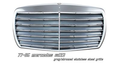 This Mercedes Benz E Class Replacement Grille will fit 1977, 1978, 1979, 1980, 1981, 1982, 1983, 1984, 1985 Mercedes Benz E Class. Mercedes Benz E Class 1977-1985 Chrome Avantgarde Grille also features Chrome Plated Finish,Made of Stainless Steel. Replace or upgrade your Mercedes Benz E Class Replacement Grille with our Mercedes Benz E Class 1977-1985 Chrome Avantgarde Grille.