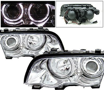 This BMW 3 Series Projector Headlights will fit 1999, 2000, 2001 BMW 3 Series. BMW E46 Sedan 3 Series 1999-2001 Clear Projector Headlights with Halo also features Diamond Cut Angel Eyes Design,Dual Halo for both High and Low Beam Lights,Quality Chrome Plated Housing. Replace or upgrade your BMW 3 Series Projector Headlights with our BMW E46 Sedan 3 Series 1999-2001 Clear Projector Headlights with Halo.