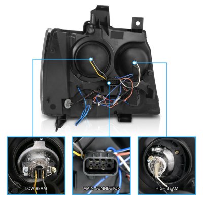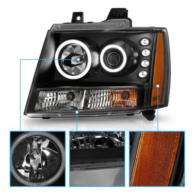 Chevy Suburban 2007-2014 Black Projector Headlights Halo and LED