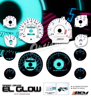 • Dodge Ram 1994-1997 Reverse Glow Gauge Cluster Face Kit