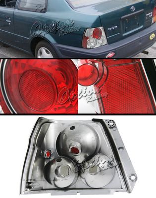 This Toyota Tercel Altezza Tail Lights will fit 1995, 1996, 1997, 1998, 1999, 2000 Toyota Tercel. Replace or upgrade your Toyota Tercel Altezza Tail Lights with our Toyota Tercel 1995-2000 Clear Altezza Tail Lights.
