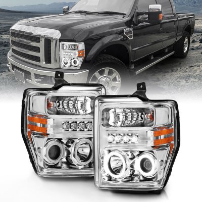 • Ford F350 Super Duty 2008-2010 Clear Projector with Headlights Halo and LED