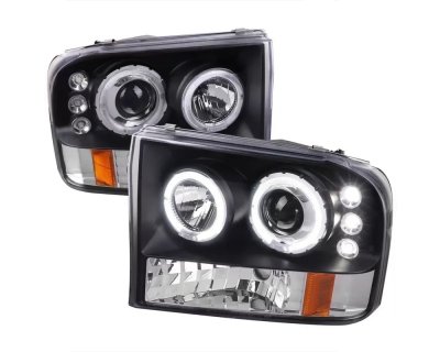 Ford F250 Super Duty 1999-2004 Black Dual Halo Projector Headlights with LED