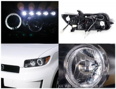• Scion xB 2008-2010 Black Halo Projector Headlights with LED