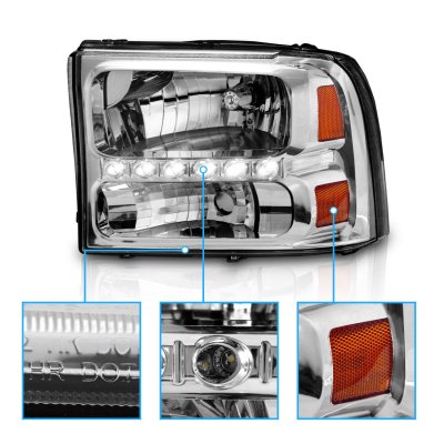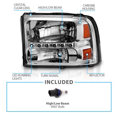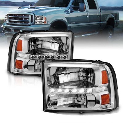 Ford F350 Super Duty 1999-2004 Clear Crystal Headlights with LED