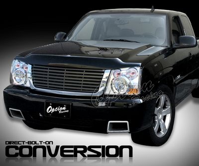 This Chevy Silverado Grille and Headlight Conversion will fit 2003, 2004, 2005 Chevy Silverado. Chevy Silverado 2003-2005 Chrome Trim Black Billet Grille and Clear Headlight Conversion Kit also features Black Billet Grille with Chrome Trim,Clear Euro Headlights,Bolt On Installation,All In One Complete Conversion. Replace or upgrade your Chevy Silverado Grille and Headlight Conversion with our Chevy Silverado 2003-2005 Chrome Trim Black Billet Grille and Clear Headlight Conversion Kit.