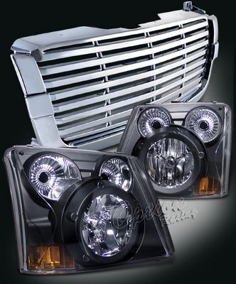 • Chevy Avalanche 2003-2006 Chrome Billet Grille and Black Headlight Conversion Kit