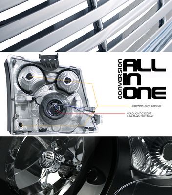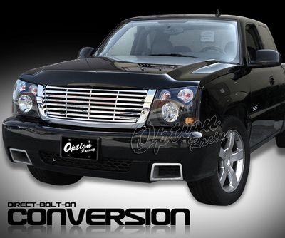 This Chevy Avalanche Grille and Headlight Conversion will fit 2003, 2004, 2005, 2006 Chevy Avalanche. Chevy Avalanche 2003-2006 Chrome Billet Grille and Black Headlight Conversion Kit also features Chrome Billet Grille,Black Housing Euro Headlights,Bolt On Installation,All In One Complete Conversion. Replace or upgrade your Chevy Avalanche Grille and Headlight Conversion with our Chevy Avalanche 2003-2006 Chrome Billet Grille and Black Headlight Conversion Kit.
