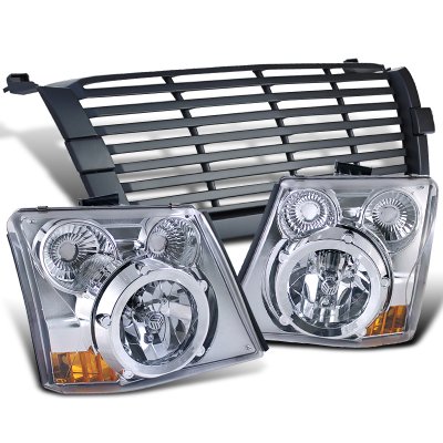 • Chevy Avalanche 2003-2006 Black Billet Grille and Clear Headlight Conversion Kit