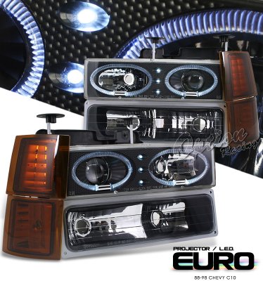 This Chevy Silverado Headlights Set will fit 1994, 1995, 1996, 1997, 1998 Chevy Silverado. Chevy Silverado 1994-1998 Black Halo Projector Headlights and Bumper Lights Set also features Black Dual Halo Projector Headlights with LED,Black Bumper Lights,Smoked Amber Corner Lights. Replace or upgrade your Chevy Silverado Headlights Set with our Chevy Silverado 1994-1998 Black Halo Projector Headlights and Bumper Lights Set.