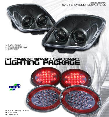 This Chevy Corvette Headlights Set will fit 1997, 1998, 1999, 2000, 2001, 2002, 2003, 2004 Chevy Corvette. Chevy Corvette 1997-2004 Depo Black Projector Headlights Set also features Projector Headlights,LED Tail Lights. Replace or upgrade your Chevy Corvette Headlights Set with our Chevy Corvette 1997-2004 Depo Black Projector Headlights Set.