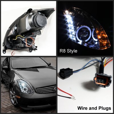 • Infiniti G35 Coupe 2003-2006 Clear Halo Projector Headlights with LED Daytime Running Lights