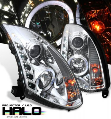 This Infiniti G35 Projector Headlights will fit 2003, 2004, 2005, 2006 Infiniti G35. Infiniti G35 Coupe 2003-2006 Clear Halo Projector Headlights with LED Daytime Running Lights also features Projector Style Lighting,Direct Replacement,Easy Installation. Replace or upgrade your Infiniti G35 Projector Headlights with our Infiniti G35 Coupe 2003-2006 Clear Halo Projector Headlights with LED Daytime Running Lights.