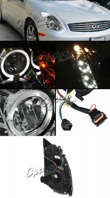 Questions on Infiniti G35 Coupe 2003-2006 Clear Halo Projector Headlights with LED Daytime Running Lights