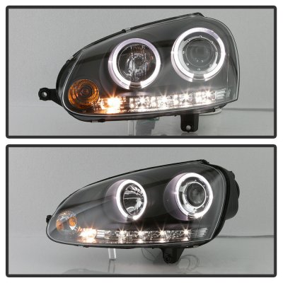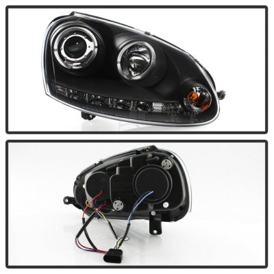 VW GTI 2006-2009 Black Halo Projector Headlights with LED Daytime Running Lights