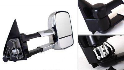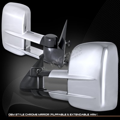 This Chevy Suburban Towing Mirrors will fit 2000, 2001, 2002, 2003, 2004, 2005, 2006 Chevy Suburban. Chevy Suburban 2000-2006 Chrome Manual Towing Mirrors also features Mirror glass size : 12" x 7.5",Mirrors can telescopically extend MANUALLY to provide a wide angle of rear view, Full extended length : 21" / Closed length : 17". (from base). Replace or upgrade your Chevy Suburban Towing Mirrors with our Chevy Suburban 2000-2006 Chrome Manual Towing Mirrors.