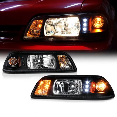 This Ford Mustang Euro Headlights will fit 1987, 1988, 1989, 1990, 1991, 1992, 1993 Ford Mustang. Replace or upgrade your Ford Mustang Euro Headlights with our Ford Mustang 1987-1993 Black Euro Headlights with LED.