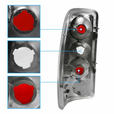 This GMC Yukon Denali Custom Tail Lights will fit 2001, 2002, 2003, 2004, 2005, 2006 GMC Yukon Denali. GMC Yukon Denali 2001-2006 Chrome Custom Tail Lights also features Chrome Housing Clear Lens. Replace or upgrade your GMC Yukon Denali Custom Tail Lights with our GMC Yukon Denali 2001-2006 Chrome Custom Tail Lights.