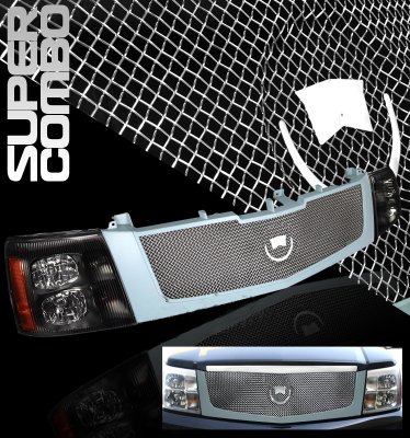 Cadillac Escalade 2002 Stainless Steel Mesh Grille and Black Euro Headlights Set