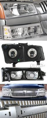 • Chevy Avalanche 2003-2006 Chrome Grille and Euro Headlights with Bumper Lights