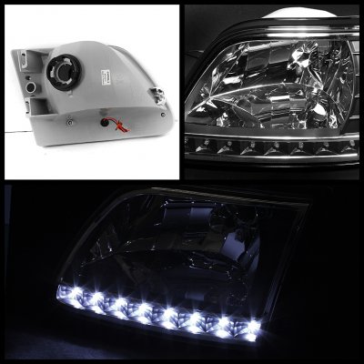 This Ford Expedition Euro Headlights will fit 1997, 1998, 1999, 2000, 2001, 2002 Ford Expedition. Ford Expedition 1997-2002 Black Euro Headlights with LED DRL also features LED Daytime Running Lights. Replace or upgrade your Ford Expedition Euro Headlights with our Ford Expedition 1997-2002 Black Euro Headlights with LED DRL.