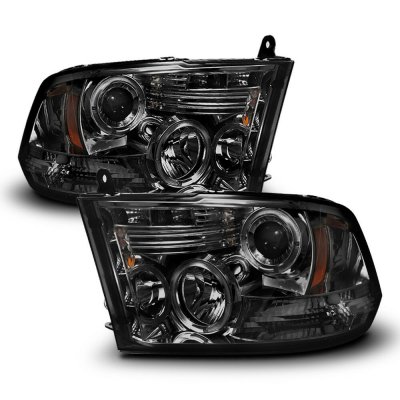 • Dodge Ram 2009-2018 Smoked Halo Projector Headlights with LED DRL