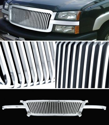 This Chevy Silverado Vertical Grille will fit 2003, 2004, 2005 Chevy Silverado. Replace or upgrade your Chevy Silverado Vertical Grille with our Chevy Silverado 2003-2005 Chrome Vertical Grille.