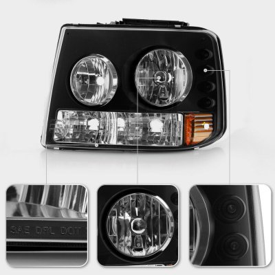 Chevy Tahoe 2000-2006 Black Headlights and Bumper Lights Conversion with LED