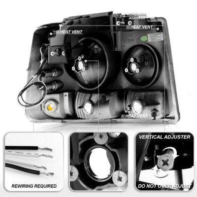 This Chevy Tahoe Euro Headlights will fit 2000, 2001, 2002, 2003, 2004, 2005, 2006 Chevy Tahoe. Chevy Tahoe 2000-2006 Black Headlights and Bumper Lights Conversion with LED also features Low Beam 9006 and High Beam 9005. Replace or upgrade your Chevy Tahoe Euro Headlights with our Chevy Tahoe 2000-2006 Black Headlights and Bumper Lights Conversion with LED.