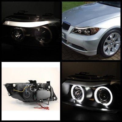 BMW 3 Series E90 Sedan 2006-2008 Black Dual CCFL Halo Projector Headlights