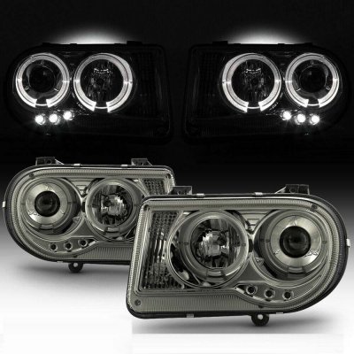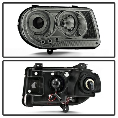 Chrysler 300 2005-2008 Smoked Halo Projector Headlights with LED