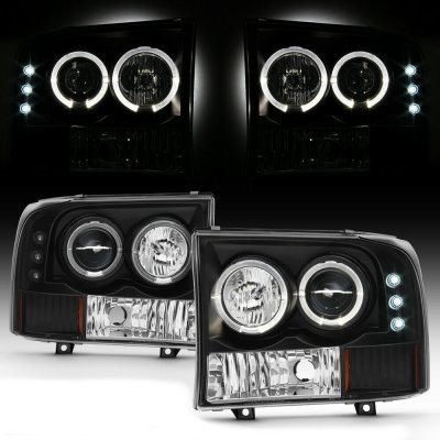 Ford F350 Super Duty 1999-2004 Black Dual Halo Projector Headlights with LED