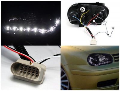 • VW Golf 1999-2005 Smoked Projector Headlights with LED Daytime Running Lights