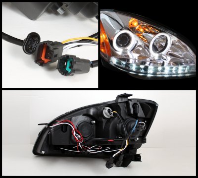 • Nissan Altima 2002-2004 Clear Dual Halo Projector Headlights with LED