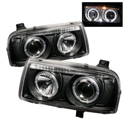 • VW Jetta 1993-1998 Black Halo Projector Headlights with LED
