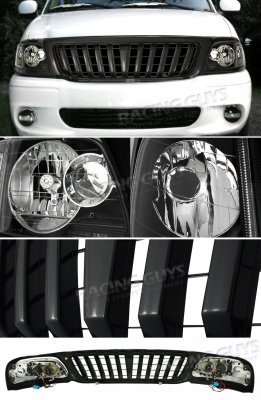 Ford Expedition 1999-2002 Black Vertical Grille and Euro Headlights