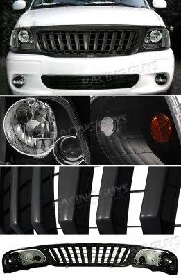 This Ford Expedition Grille and Headlight Conversion will fit 1999, 2000, 2001, 2002 Ford Expedition. Ford Expedition 1999-2002 Black Vertical Grille and Headlights also features Black Vertical Grille,Black Euro Headlights,Black Corner Lights. Replace or upgrade your Ford Expedition Grille and Headlight Conversion with our Ford Expedition 1999-2002 Black Vertical Grille and Headlights.