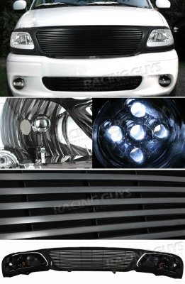 Ford Expedition 1999-2002 Black Billet Grille and Clear Headlights