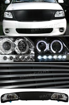 Ford F150 1999-2003 Black Billet Grille and Clear Projector Headlights