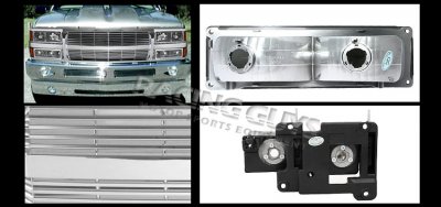 Chevy Suburban 1994-1999 Chrome Billet Grille and Smoked Headlights