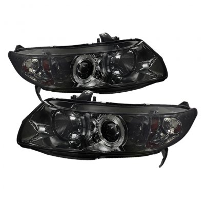 Honda Civic Coupe 2006-2011 Smoked Halo Projector Headlights