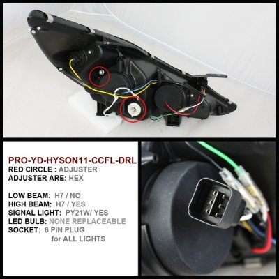 This Hyundai Sonata Projector Headlights will fit 2011, 2012 Hyundai Sonata. Hyundai Sonata 2011-2012 Clear CCFL Halo Projector Headlights with LED also features CCFL Halo,LED Daytime Running Light. Replace or upgrade your Hyundai Sonata Projector Headlights with our Hyundai Sonata 2011-2012 Clear CCFL Halo Projector Headlights with LED.